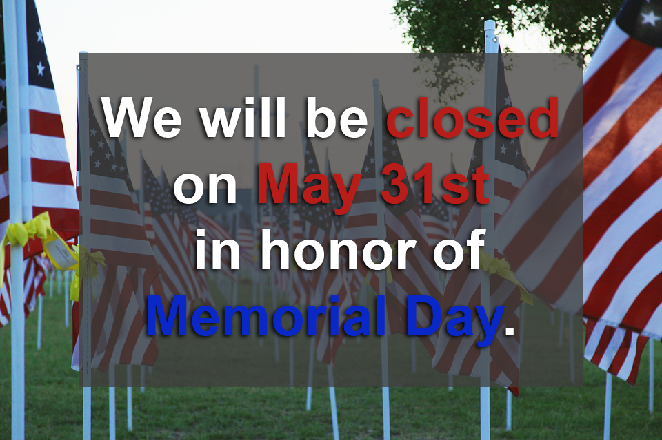 In honor of Memorial Day, our office will be closed on Monday, May 31, 2021.